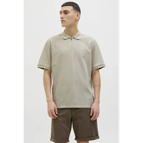 JACK & JONES ESSENTIALS regular polo met ingebreid patroon beige