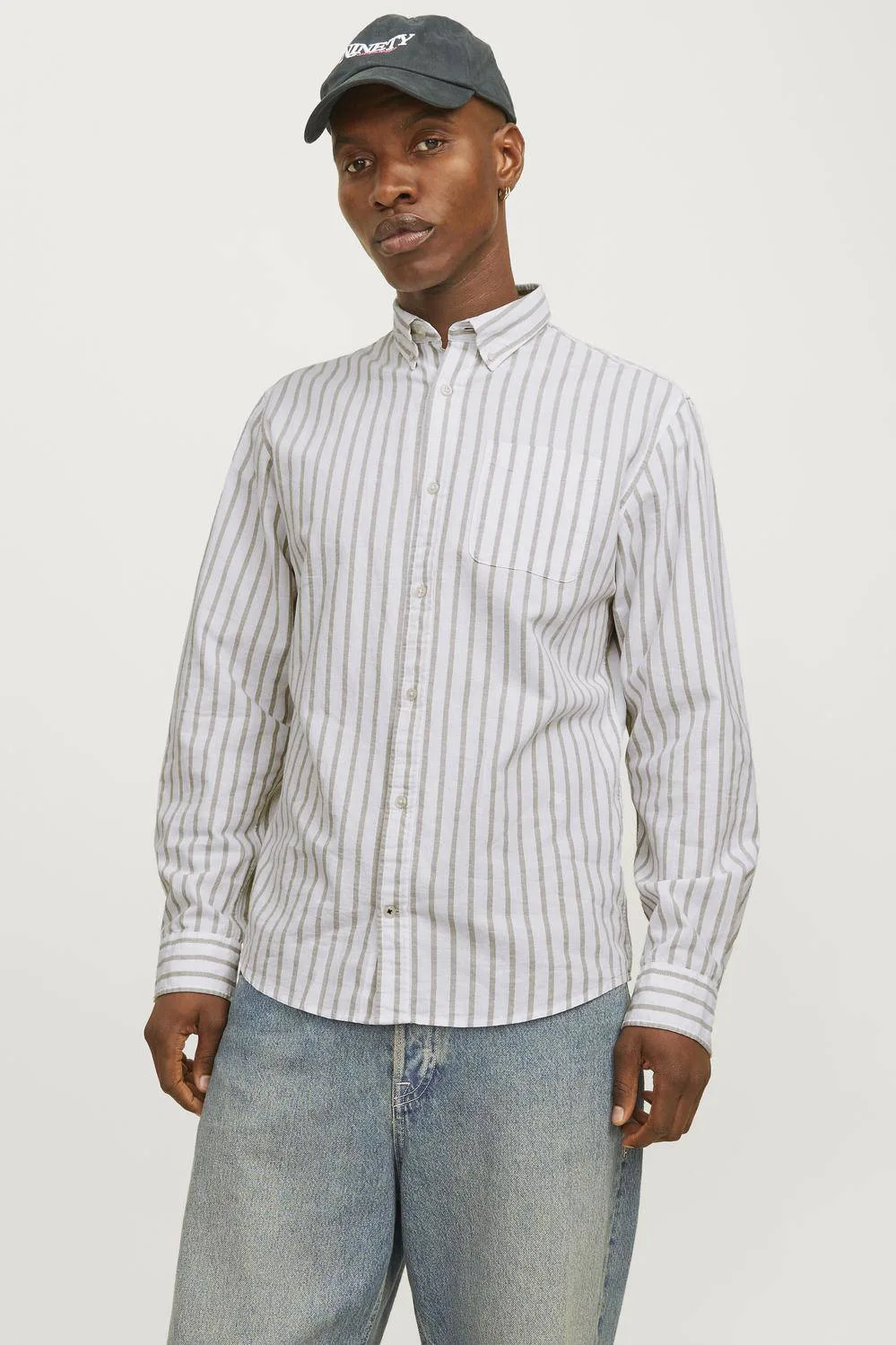 Design: 1-knoops manchetten, Placket, Ronde zoom, Borstzak; Type sluiting: Knoopsluiting; Materiaal: Katoen; Motief: Gestreept; Kraag: Button-down; Extra's: All-over patroon, Voelt zacht aan; Pasvorm: Slim fit; Armlengte: Lange mouw