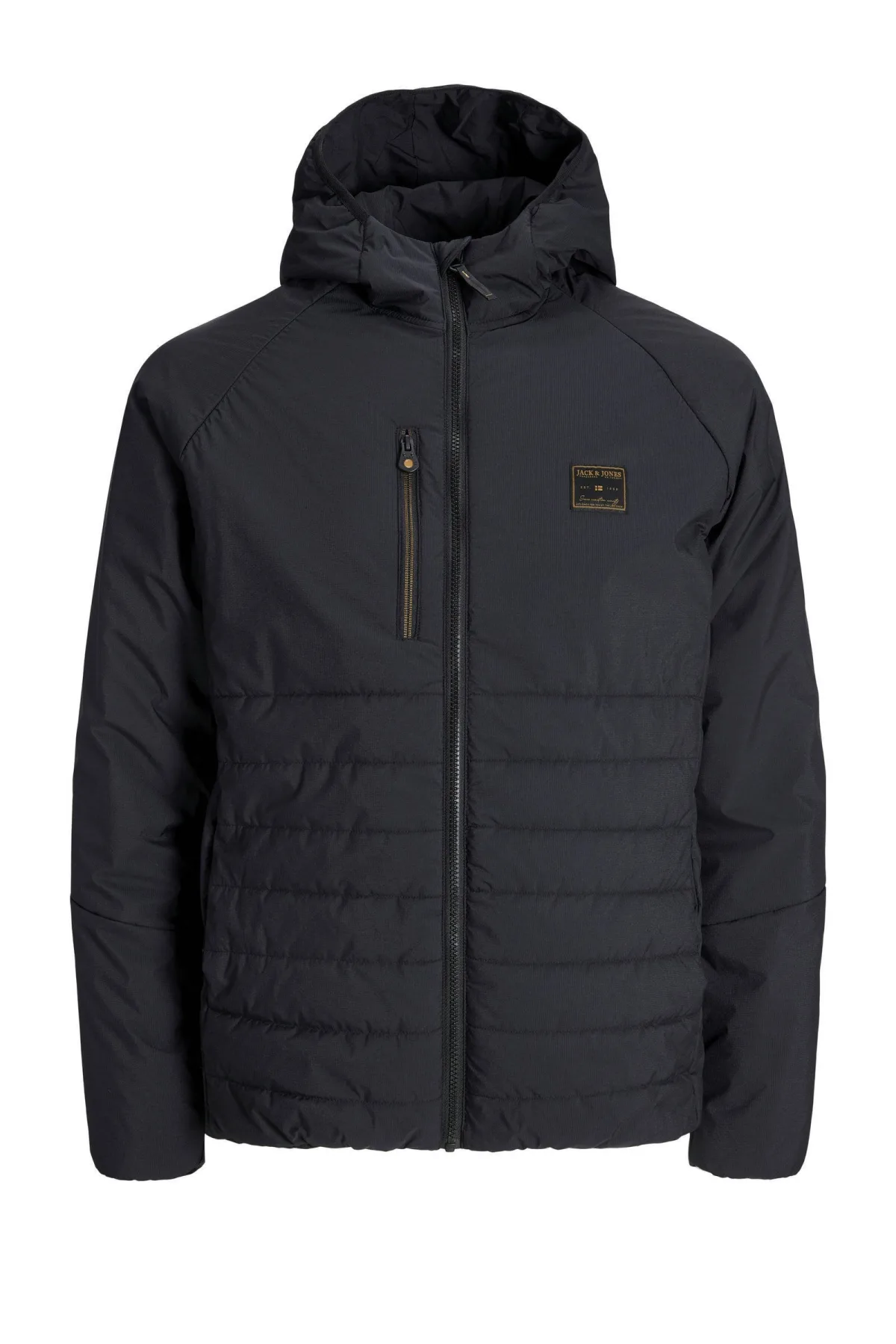 Deze JJFINN jas van JACK & JONES heeft een capuchon en een ritssluiting. De jas is doorgestikt, gevoerd en gemaakt voor heren. Met afsluitbare zakken en borstzak, handig voor herfst en lente.