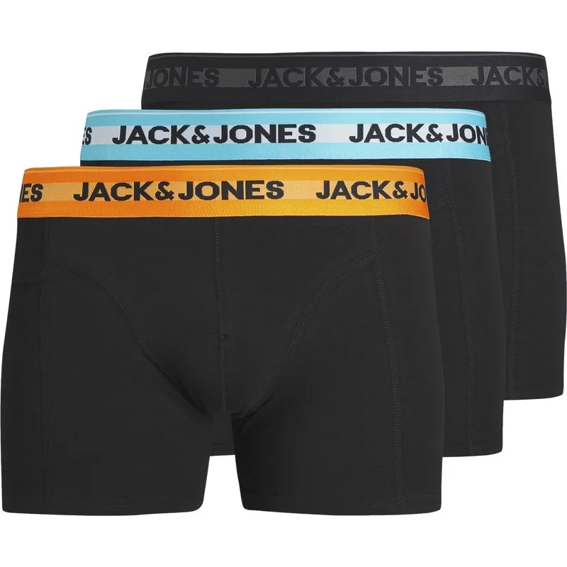 Jack and Jones trunks boxershorts multipack JACHUDSON voor heren. De set basic bamboe onderbroeken bevat 3 effen zwarte onderbroeken met elastische waistbands. Daarnaast is de elastische waistband voorzien van het Jack&jones logo en een kleuraccent. De gebreide Jersey stof is lichtgewicht en stretchy voor extra comfort. Het bamboe voelt zijdezacht en soepel aan op de huid en heeft van nature aanwezige antibacteriële eigenschappen tegen geuren en bacterieën. Gemaakt van 65% viscose, 30% katoen en 5% elastaan.