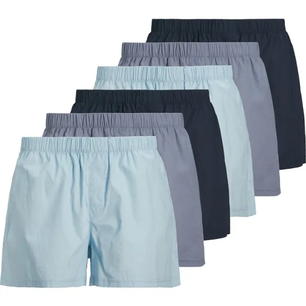 JACK&JONES geweven boxershorts voor heren in een praktisch 6-pack. Broek met een comfortabele en elastische tailleband. Perfect voor dagelijks gebruik