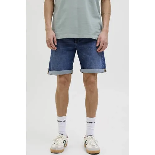 deze korte broek van JACK & JONES JEANS INTELLIGENCE heeft een regular fit en een knoopsluiting gemaakt van denim met vijf broekzakken en omslagen bij de broekspijpen zo ga je voor een comfortabele zomerdag