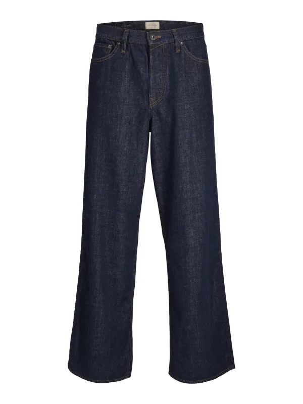 Design: 5-pocket-style; Type sluiting: Knoopsluiting; Materiaal: Denim; Motief: Effen; Extra's: Studs, Contrasterende naden; Wassing: Raw/unwashed; Lengte: Lang/maxi; Pasvorm: Wide leg