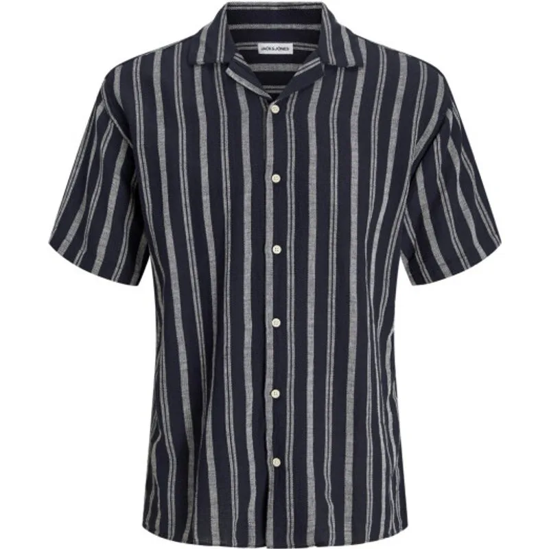 Jack & Jones Jjeenzo stripe resort shirt ss sn navy