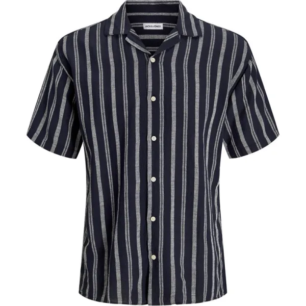 Jack & Jones Jjeenzo stripe resort shirt ss sn navy