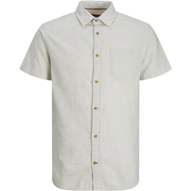 Overhemd voor heren van Jack & Jones. Dit overhemd heeft korte mouwen, een klassieke kraag en knoopsluiting. De blouse is gemaakt van een soepel vallende jersey stof.Extra details Opstaande kraag Knoopsluiting Korte mouwenMateriaal:100% KatoenWasvoorschrift:Machinewas max. Fijnwas 30 graden Celsius. Niet in droger