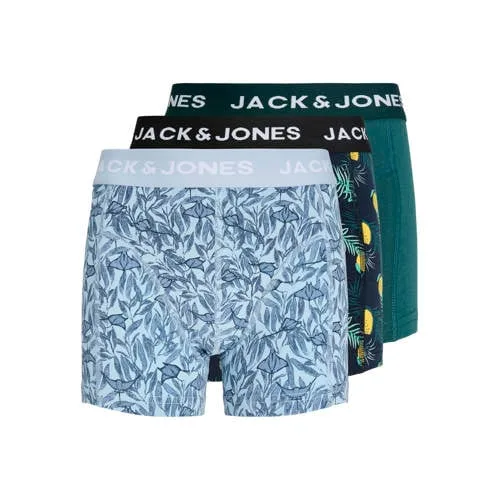 Deze set jongens boxershorts van JACK & JONES JUNIOR is een praktische basic voor elke dag. In de verpakking zitten 3 boxershorts in donkerblauw/lichtblauw/groen met een all over print. Het zachte stretchkatoen met 95% katoen en 5% elastaan voelt comfortabel aan op de huid en volgt soepel elke beweging, ideaal voor schooldagen, sport en relaxmomenten thuis.Comfortabele basics voor elke dag Set van 3: praktische multipack met verschillende kleuren binnen hetzelfde thema Gemaakt van 95% katoen / 5% elastaan voor een zachte, soepele touch All over print geeft een opvallende en moderne uitstraling Elastische tailleband voor een stevige maar comfortabele aansluiting Geschikt voor schoolkind en tiener, uit de 'Daily' collectie Wasvoorschrift: handwas Niet strijken en niet drogen in de droogtrommelPraktisch ondergoed voor actieve jongensDe boxershorts sluiten mooi aan zonder te knellen, zodat ze onder jeans, joggingbroek of korte broek niet opvallen. Door het gebruik van stretchkatoen blijven ze prettig zitten tijdens rennen, spelen en sporten.JACK & JONES JUNIOR: stijl in kindermatenJACK & JONES JUNIOR brengt de herkenbare, casual stijl van JACK & JONES naar jongere boys. De focus ligt op comfortabele pasvormen en dagelijkse draagbaarheid, met designs die aansluiten bij de kleding uit de volwassenlijn. Zo kies je voor ondergoed dat goed past bij de rest van de garderobe en is gemaakt met oog voor kwaliteit.Een praktische 3-pack waar jouw kind elke dag gebruik van maakt.