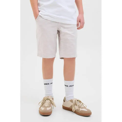 Deze JACK & JONES JUNIOR korte broek voor jongens is ontworpen in lichtgrijs. Met een elastische tailleband en koord biedt deze casual korte broek comfort. Gemaakt van katoen en linnen, en voorzien van zakken vooraan.