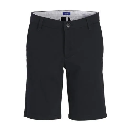 Deze donkerblauwe jongens chino short van JACK & JONES JUNIOR is een fijne basic voor iedere dag. De short heeft de uitstraling van een nette chino en het gemak van een comfortabele bermuda, ideaal voor school, vrije tijd en logeerpartijtjes. Door de combinatie van katoen met een kleine toevoeging elastaan beweegt de short makkelijk mee bij alles wat je kind doet.Comfort en details voor elke dag Gemaakt van zacht stretchkatoen met 98% katoen en 2% elastaan voor een soepele pasvorm Effen donkerblauwe kleur die zich makkelijk laat combineren met T-shirts, polo's en hoodies Rits- en knoopsluiting zorgt voor een vertrouwd en stevig dichtgevoel Zakken voor en achter, handig voor kleine spullen zoals een sleutel of kleingeld Valt normaal volgens het maatadvies, zodat je gewoon de gebruikelijke maat kunt kiezen Geschikt voor schoolkinderen en tieners door de tijdloze bermuda- en chino stijl Onderhoudsvriendelijk: wasbaar op 40 graden en warm strijkbaarIdeaal voor school en vrije tijdDe short past bij veel dagelijkse momenten. Combineer met sneakers en een T-shirt voor een relaxte look of met een polo voor een iets nettere outfit. Door de iets langere bermuda lengte voelt het comfortabel en staat het verzorgd.JACK & JONES JUNIOR voor stoere kidsJACK & JONES JUNIOR vertaalt de populaire stijlen van JACK & JONES naar maten voor jongens. De collectie bestaat uit herkenbare, moderne ontwerpen met aandacht voor pasvorm en draaggemak. Zo ziet je kind er elke dag verzorgd uit in kleding met een soepele pasvorm die lang mooi blijft.Een betrouwbare basisshort waar je kind het hele seizoen plezier van heeft.