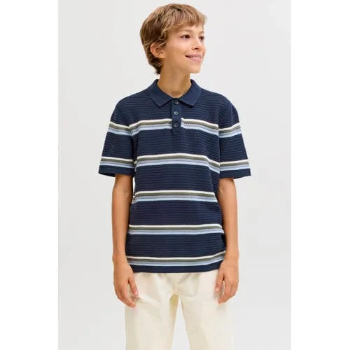 JACK & JONES JUNIOR gestreepte polo donkerblauw gebreid