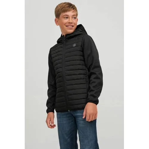 JACK & JONES JUNIOR gewatteerde tussenjas JJEMULTI met logo zwart