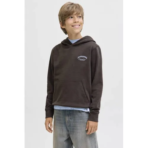JACK & JONES JUNIOR hoodie met backprint donkerbruin Prijzen