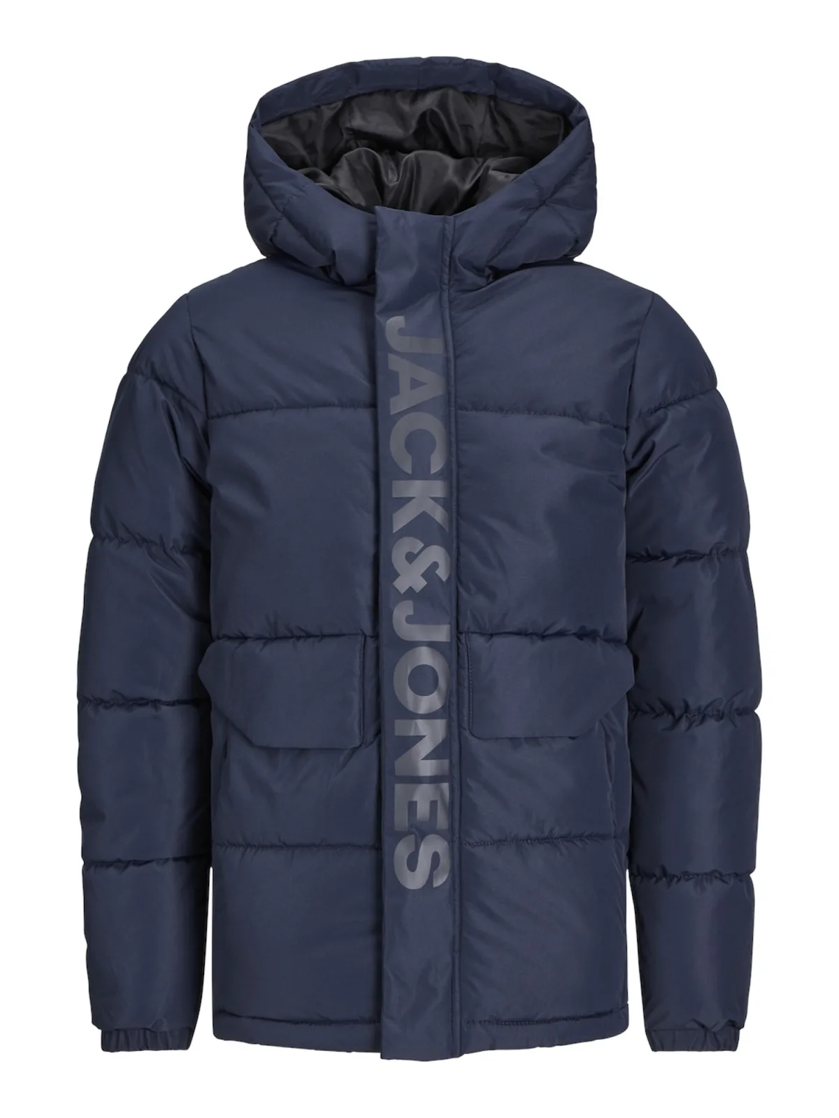 Gewatteerd kinderjack van Jack & Jones;Regular fit;Capuchon;Blinde ritssluiting;Labelprint;Klepzakken;Elastische boordjes;Ruglengte bij maat 140: 56 cm;Schouderbreedte bij maat 140: 37 cm;Mouwlengte bij maat 140: 51 cm