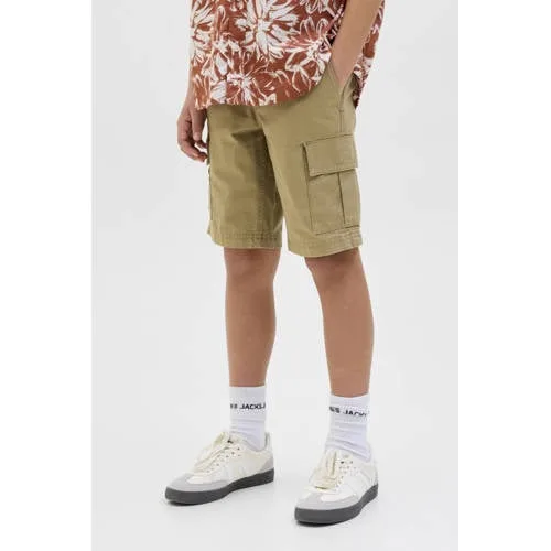Deze JACK & JONES JUNIOR cargo shorts voor jongens hebben een losse pasvorm. Gemaakt van 100% katoen in lichtbruin. Deze korte broek is voorzien van een verstelbare taille en heeft een rits- en knoopsluiting en praktische zakken aan zowel de voor- als achterkant en cargozakken.