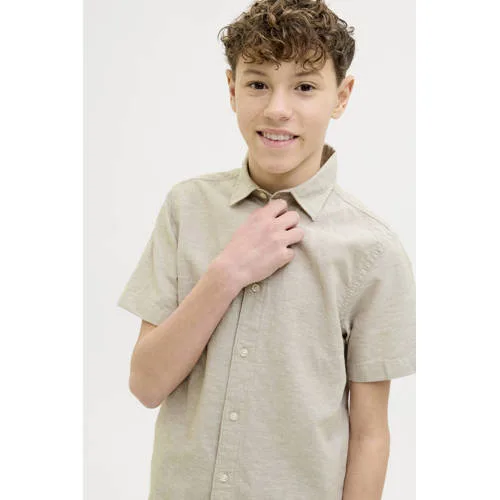 Dit JACK & JONES JUNIOR overhemd voor jongens is ideaal voor casual dagen. Gemaakt van 70% katoen en 30% linnen, met een klassieke kraag en korte mouwen. Het beige overhemd straalt eenvoud en stijl uit.