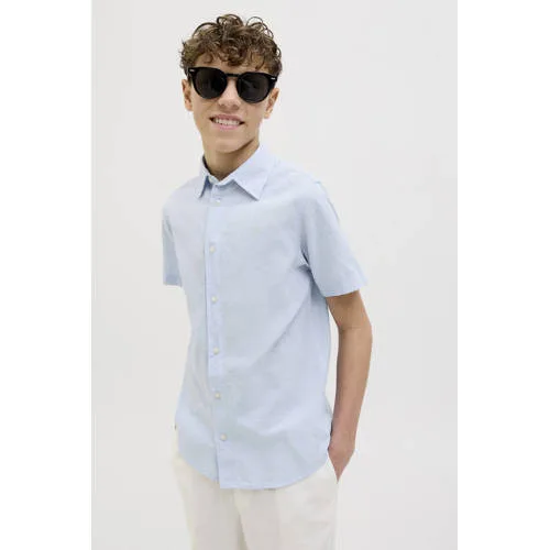 Dit overhemd van JACK & JONES JUNIOR is perfect voor jongens. Het lichtblauwe overhemd heeft een klassieke kraag en korte mouwen. Gemaakt van katoen en linnen, biedt het een luchtig gevoel voor elke gelegenheid.