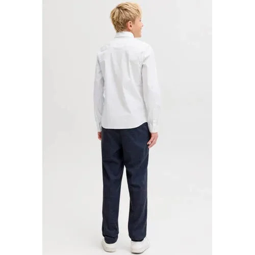 Dit JACK & JONES JUNIOR JJEAXEL overhemd voor jongens is wit en heeft een klassieke kraag. Gemaakt van katoen met elastaan, wat zorgt voor een comfortabele pasvorm. De lange mouwen maken het geschikt voor uiteenlopende gelegenheden.