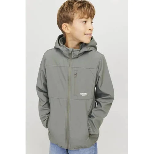 Deze JACK & JONES JUNIOR softshell jas in zachtgroen is ideaal voor de herfst. Voorzien van een capuchon, ritssluiting en borstzak. Gemaakt voor jongens met een waterafstotende laag en afsluitbare zakken voor extra gebruiksgemak.