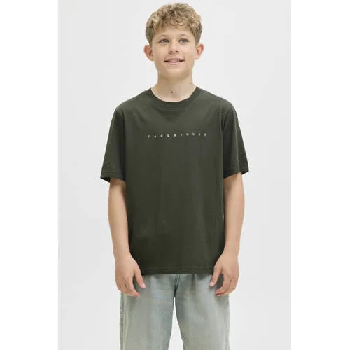 Dit T-shirt van JACK & JONES JUNIOR heeft een ronde hals en korte mouwen. Het is gemaakt van 100% katoen. Door de relaxte pasvorm kun je het makkelijk dragen tijdens spelen of relaxen.