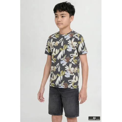 Dit JACK & JONES JUNIOR T-shirt is gemaakt van 100% katoen. Met een ronde hals en korte mouwen is het geschikt voor jongens. De donkergrijs/multicolor kleur geeft dit JORVARENNA shirt een stoere uitstraling.