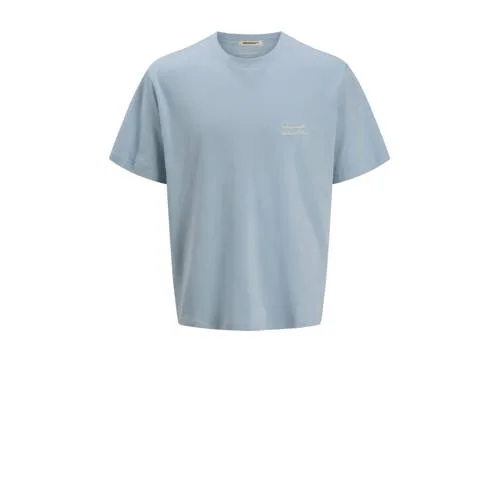 Dit JACK & JONES JUNIOR T-shirt heeft een relaxed fit en is gemaakt van 100% katoen. De lichtblauwe kleur en korte mouwen maken het ideaal voor warme dagen. De ronde hals zorgt voor een comfortabele uitstraling.