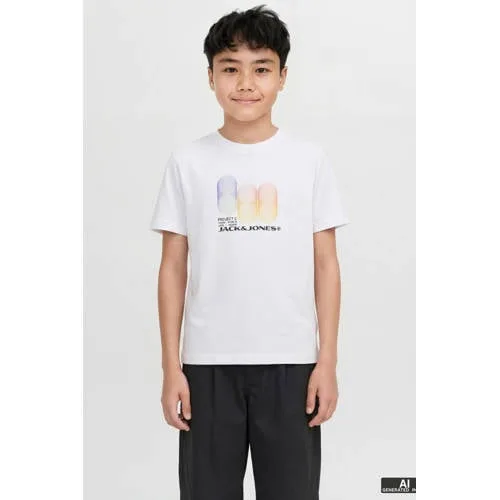 dit JACK & JONES JUNIOR T-shirt heeft korte mouwen en een ronde hals het shirt is gemaakt van 100% katoen je draagt het makkelijk bij verschillende outfits en de pasvorm is regular