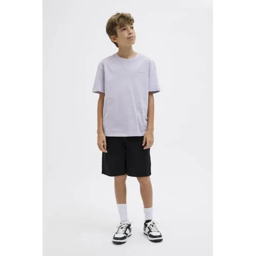 Dit JACK & JONES JUNIOR T-shirt voor jongens heeft een lila kleur en een ronde hals. Gemaakt van 100% katoen en voorzien van korte mouwen. De stijlnaam is JJSUMMER VIBES en zorgt voor een trendy look.
