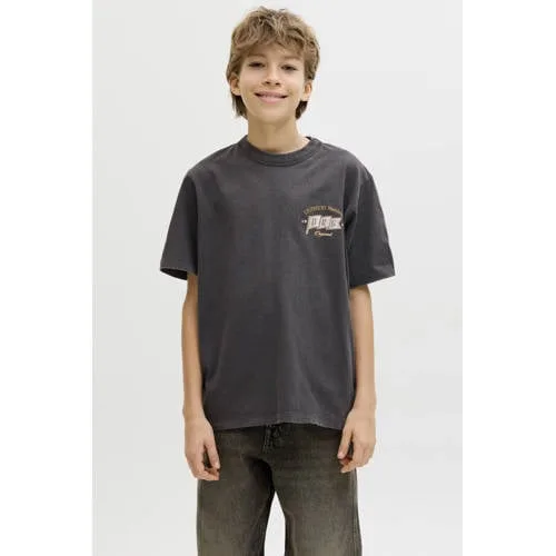 Casual, comfortabel en klaar voor elke dag, dat is het JACK & JONES JUNIOR jongens T-shirt JORUPSTATE. Dit zwarte T-shirt heeft een oversized pasvorm en een opvallende printopdruk, waardoor het een praktische basic in de kast is. Gemaakt van 100% katoen voelt het zacht aan op de huid en is het geschikt voor school, chillen thuis of een dagje weg.Details die elke dag kloppen Oversized fit voor een ontspannen, moderne look en extra bewegingsvrijheid Zwarte kleur met printopdruk die makkelijk te combineren is met jeans, joggers of shorts Gemaakt van 100% katoen voor een zachte touch en prettig draaggevoel Korte mouwen en ronde hals, ideaal voor dagelijks gebruik in elk seizoen Maatadvies: valt normaal, dus je kunt gewoon de gebruikelijke maat kiezenMakkelijk combineren in elke outfitDit JORUPSTATE T-shirt is geschikt voor allerlei dagelijkse momenten. De oversized pasvorm biedt ruimte om vrij te bewegen tijdens school, spelen of relaxen thuis. Het T-shirt voelt licht en luchtig aan, waardoor het ook op warmere dagen prettig draagt.JACK & JONES JUNIOR: dagelijkse stijl voor kidsJACK & JONES JUNIOR vertaalt de bekende JACK & JONES stijl naar kleding voor jongens. Comfort, goede pasvormen en eigentijdse prints staan centraal, zodat kinderen zich vrij kunnen bewegen en er tegelijk modern uitzien.Een relaxed T-shirt dat elke dag weer makkelijk uit de kast wordt gepakt.