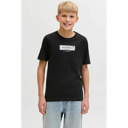 Voor elke dag is een comfortabel shirt heel handig. Dit zwart katoen jongens T-shirt van JACK & JONES JUNIOR is daar een passend voorbeeld van. Het zwarte shirt heeft een stoere logo-print op de voorkant en past makkelijk bij jeans, jogpants of een korte broek. De zachte stof van 100% katoen voelt prettig aan op de huid en de pasvorm valt normaal, zodat je gewoon je gebruikelijke maat kunt kiezen.Details die het verschil maken Gemaakt van 100% katoen dat zacht aanvoelt en prettig draagt Korte mouwen en een ronde hals voor een tijdloze, sportieve look Zwarte kleur met logo-print, makkelijk te combineren met andere kleding Valt normaal volgens het maatadvies, kiezen in je standaard maat Praktische verzorging: handwas, niet drogen in de droogtrommel en niet strijken Geschikt voor schoolkind en tiener, uit de Daily collectieIdeaal voor elke dagDit T-shirt is gemaakt voor dagelijks gebruik, van schooldagen tot relaxte momenten thuis. Het shirt combineert eenvoudig met een spijkerbroek en sneakers, maar staat ook goed onder een open hoodie of vest op koelere dagen.JACK & JONES JUNIOR stijlJACK & JONES JUNIOR brengt de herkenbare JACK & JONES look naar kleding voor jongens. De collectie sluit aan op het dagelijks leven, met comfortabele fits, herkenbare logo's en kleuren die makkelijk te combineren zijn. Zo wordt aankleden elke dag net iets makkelijker.Een praktische basic voor elke dag.