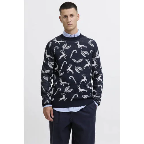 JACK & JONES kersttrui gebreid donkerblauw