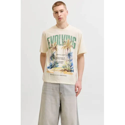 Ga voor een relaxte, everyday look met dit JACK & JONES heren T-shirt met print. De antique white kleur is een zachte beige tint die makkelijk combineert met je favoriete jeans, joggers of chino. De comfortabele relaxed fit geeft net wat extra ruimte, waardoor het T-shirt nonchalant valt zonder te wijd te worden. De printopdruk zorgt voor een casual accent dat goed past bij een dagelijkse outfit.Details die je elke dag draagt Gemaakt van 100% katoen voor een zachte touch op de huid Relaxed pasvorm voor een comfortabele, iets lossere look Korte mouwen en ronde hals, ideaal voor dagelijks gebruik Antique white kleur, goed te combineren met denim en neutrale tinten Printopdruk aan de voorkant voor een casual, grafische stijl Wasbaar op 40 graden en warm strijkbaar (2 punten) voor eenvoudig onderhoud Niet drogen in de droogtrommel om de stof en print mooi te houdenCasual styling voor elke dagDraag dit T-shirt met een rechte jeans en sneakers voor een eenvoudige, doordeweekse look. Voor een iets nettere stijl combineer je het met een chino en een open overhemd eroverheen.JACK & JONES ORIGINALSJACK & JONES staat bekend om toegankelijke herenmode met een sterke basis in denim en casual stijlen. De ORIGINALS lijn richt zich op grafische T-shirts, trendy kleuren en fijne fits die je makkelijk elke dag draagt. Zo voeg je zonder moeite een frisse update toe aan je kledingkast.Een comfortabel T-shirt dat je zo uit de kast pakt voor al je dagelijkse plannen.