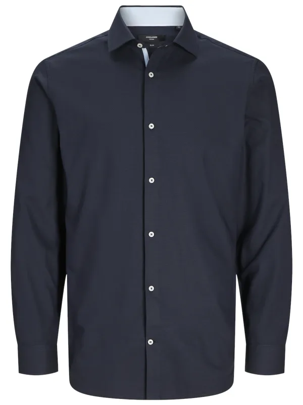 look Verfraai je basisgarderobe met een tijdloos overhemd van hoge kwaliteit, perfect om elke dag te dragen. De Dobby-stof heeft kleine geometrische patronen die textuur toevoegen voor een verfijnde . - Detail: Overhemd - Halslijn: Overhemdkraag - Mouwen: Lange mouw (L/S) - Sluiting: Knoopsluiting - Pasvorm: Slim Fit