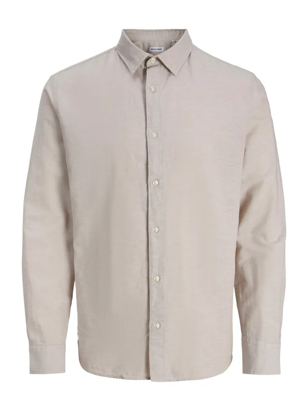 Ga voor een frisse, ontspannen look met dit JACK & JONES JJEBREEZE casual overhemd met lange mouwen. De beige kleur 'String' is makkelijk te combineren en past bij veel outfits. Dankzij de regular fit valt het overhemd comfortabel rond het lichaam, zonder te strak of te wijd te zijn. Ideaal voor dagen waarop je er verzorgd uit wilt zien met minimaal gedoe.Comfortabel overhemd voor elke dag Gemaakt van 70 procent katoen en 30 procent linnen, wat zorgt voor een luchtig en prettig draaggevoel Lange mouwen en klassieke kraag voor een tijdloze uitstraling Effen beige kleur die goed samengaat met jeans, chino of korte broek Regular fit, volgens maatadvies valt het artikel normaal Knoopsluiting over de volledige lengte voor eenvoudig aan- en uittrekken Wasbaar op 40 graden en warm strijkbaar, prettig in het onderhoudCasual outfits met een nette touchDit overhemd past goed bij alledaagse momenten, van kantoor tot een etentje. Draag het los over een T-shirt voor een meer ontspannen look of dichtgeknoopt in combinatie met een chino voor een nette, maar toch casual uitstraling. Op warmere dagen zorgt het aandeel linnen voor een luchtig gevoel.JACK & JONES ESSENTIALS als basis in je kastDe ESSENTIALS lijn van JACK & JONES draait om betrouwbare basics die je vaak pakt. Dit overhemd is zo ontworpen dat het seizoen na seizoen relevant blijft, met draagbare kleuren en comfortabele pasvormen. Een praktische keuze als vaste waarde in je garderobe.Een veelzijdig overhemd dat je elke dag opnieuw gemakkelijk erbij pakt.