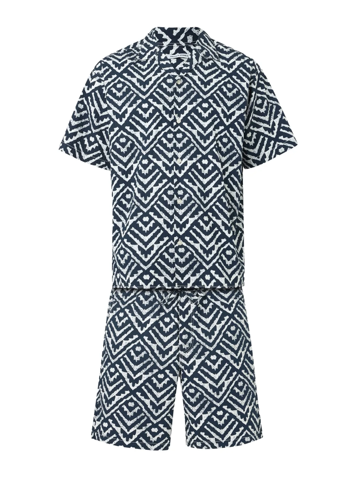 Design: Gevoerde zoom/rand, Revers kraag, Overcut schouder; Type sluiting: Knoopsluiting; Materiaal: Katoen; Extra's: All-over patroon, Gladde stof; Lengte: Knielengte; Pasvorm: Normale pasvorm; Pasvorm: Regular fit; Armlengte: Halve mouw