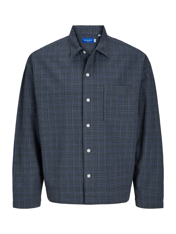 JACK & JONES Overhemd ‘JORROXBURY’ azuur / grijs / zwart