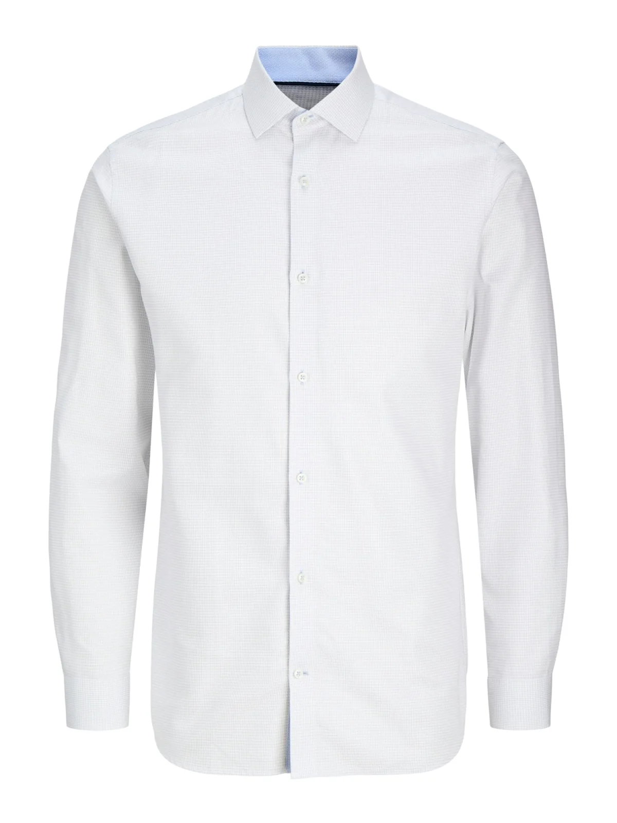 Design: Gevoerde zoom/rand, Rechte manchetten; Type sluiting: Knoopsluiting; Materiaal: Katoen; Motief: Effen; Kraag: Kentkraag; Extra's: Op staal naden, Wafelstructuur; Pasvorm: Slim fit; Armlengte: Lange mouw