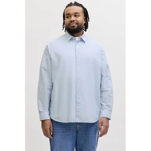 JACK & JONES PLUS SIZE regular casual overhemd met linnen Plus Size lichtblauw