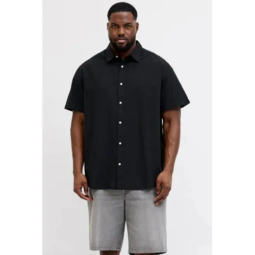 JACK & JONES PLUS SIZE regular casual overhemd met linnen zwart