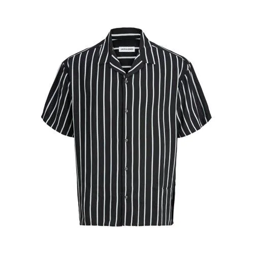 Ga relaxed en toch verzorgd op pad met dit casual overhemd met korte mouw van JACK & JONES PLUS SIZE. Het zwarte shirt heeft een tijdloze streepprint en een comfortabele regular fit, speciaal ontwikkeld voor de plus size collectie. De soepele viscose stof valt mooi langs het lichaam en voelt zacht en licht aan, fijn op warme dagen of tijdens een festival.Details die het verschil maken Plus size pasvorm: regular fit met extra ruimte waar nodig voor een ontspannen gevoel Korte mouwen, ideaal voor zomerse dagen en festivals Streepprint op een zwarte basis voor een rustige, moderne look Reverskraag geeft het overhemd een open, zomerse uitstraling Knoopsluiting over de volledige lengte om open of gesloten te dragen Gemaakt van een soepele, zachte viscose stof die prettig aanvoelt op de huid Zonder borstzak voor een strak en rustig vooraanzicht Wasbaar op 40 graden en warm strijkbaar volgens het waslabelCasual overhemd voor relaxte momentenDit JJEJEFF shirt is geschikt voor vrije dagen, een festival of een casual etentje. Draag het overhemd op een korte broek of een donkere jeans en laat het eventueel open over een simpel T-shirt voor een luchtige laag.JACK & JONES PLUS SIZEJACK & JONES PLUS SIZE richt zich op mannen die dezelfde stijl en uitstraling willen als de reguliere collectie, maar dan in grotere maten. De pasvormen worden aangepast op meer ruimte en draaggemak, zodat je kunt rekenen op comfortabele kleding met een moderne, toegankelijke look.Een gemakkelijk te combineren overhemd dat je garderobe in één keer een stuk zomerser maakt.