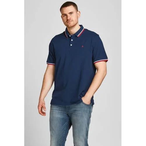 JACK & JONES PLUS SIZE slim fit polo JJEPAULOS Plus Size met contrastbies navy blazer