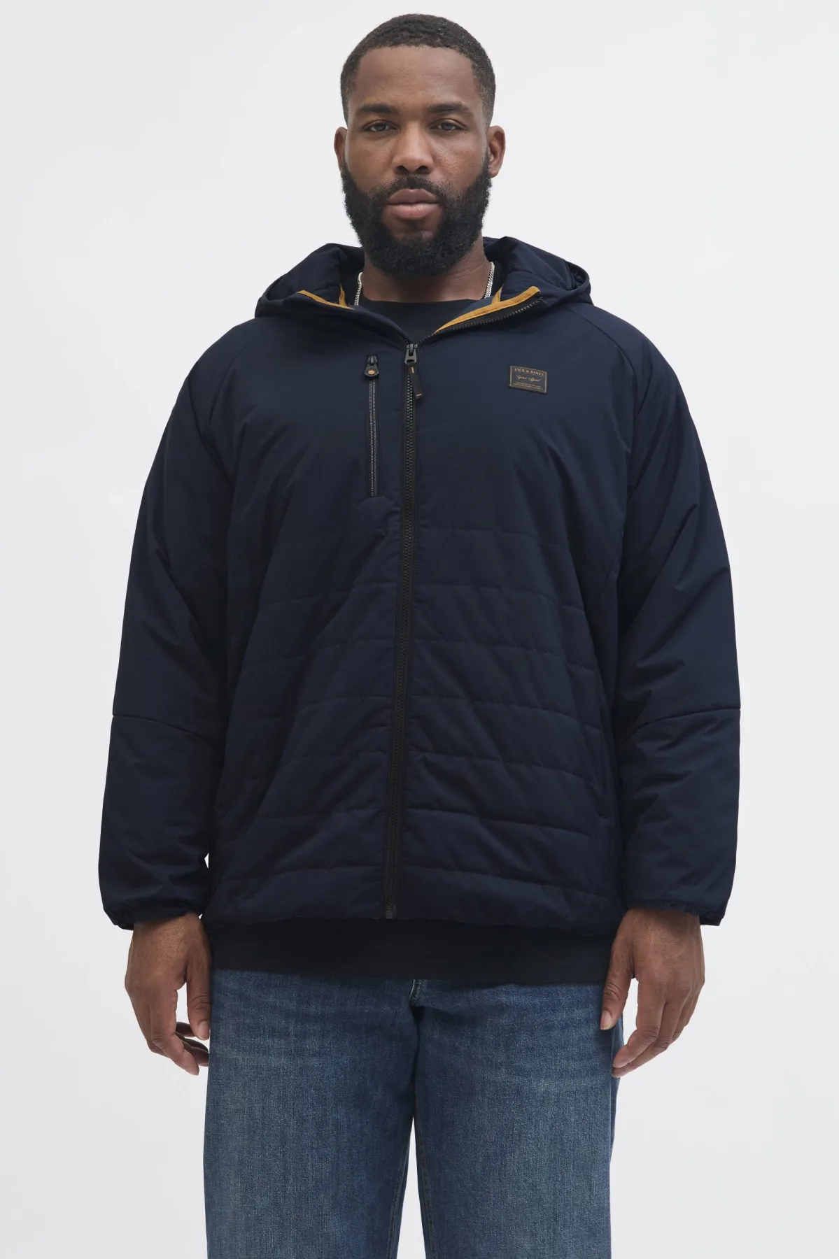 Deze jas van JACK & JONES PLUS SIZE heeft een capuchon en een ritssluiting. De jas is gevoerd en gemaakt voor de herfst en winter, met doorgestikt patroon. Je vindt borstzakken, zakken voor en een afsluitbare zak.