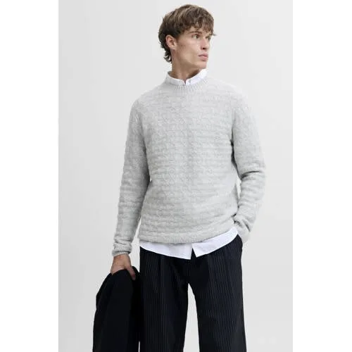 JACK & JONES PREMIUM trui met wol gebreid grijs