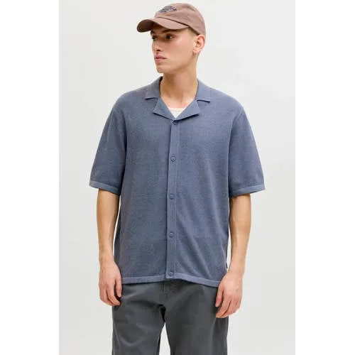 JACK & JONES relaxed casual overhemd gebreid blauw