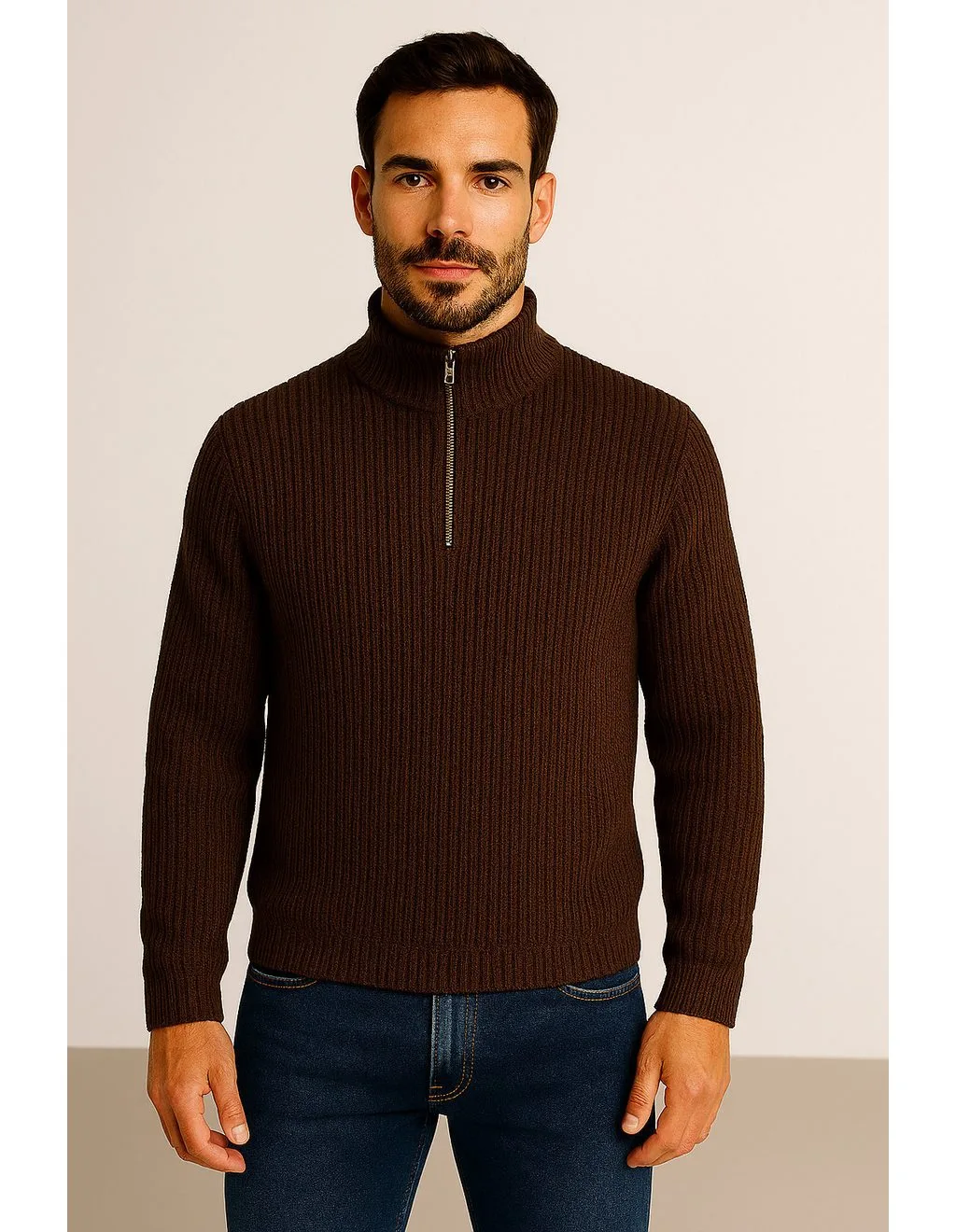 Gebreide herenpullover van Jack & Jones;Materiaalmix met katoengehalte;Regular fit;Model 'KAITO';Opstaande kraag;Ritssluiting;Ruglengte bij maat M: 72 cm;Mouwlengte bij maat M: 61 cm