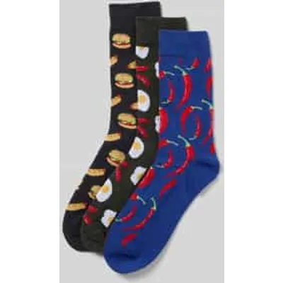 Herensokken van Jack & Jones;Katoenmix met stretchgehalte;Nauwsluitende pasvorm;Model 'HOT FOOD';All-over look;Set van 3
