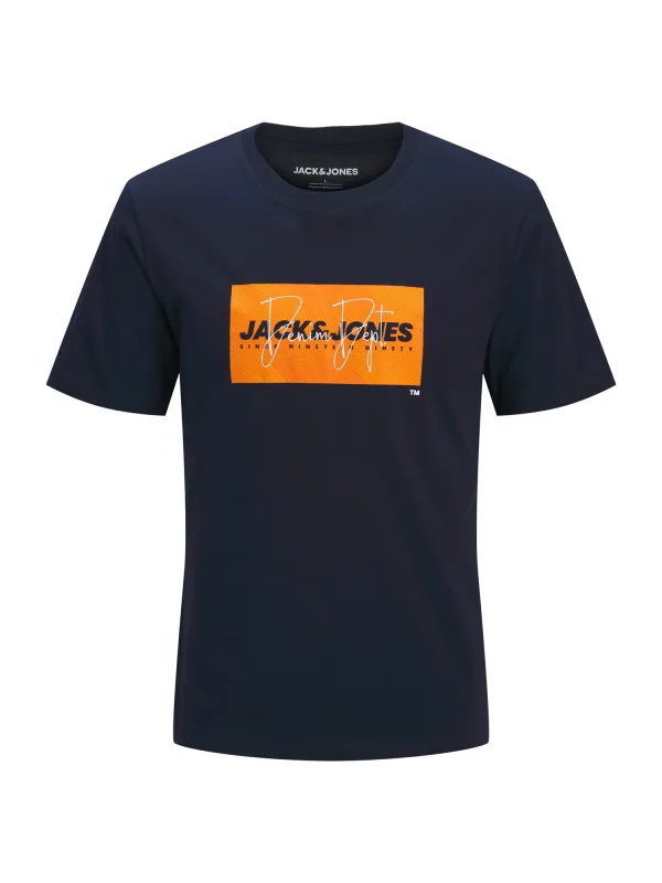 JACK & JONES Shirt ‘JJCOLE’ navy / oranje / wit