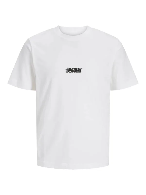 Dit Tshirt van JACK & JONES heeft korte mouwen en een ronde hals en is gemaakt van 100% katoen. Extra details zijn: Ronde hals Print op de voorkant Korte mouwenMateriaal:65% Katoen, 35% PolyesterWasvoorschrift:Machinewas max. Fijnwas 30 graden Celsius. Niet in droger