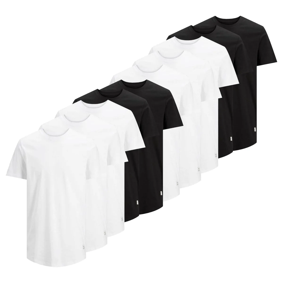 Effen heren T-shirts van het merk Jack & Jones. Shirts met ronde hals, gemaakt van puur katoen. In een handige verpakking van 10 stuks.