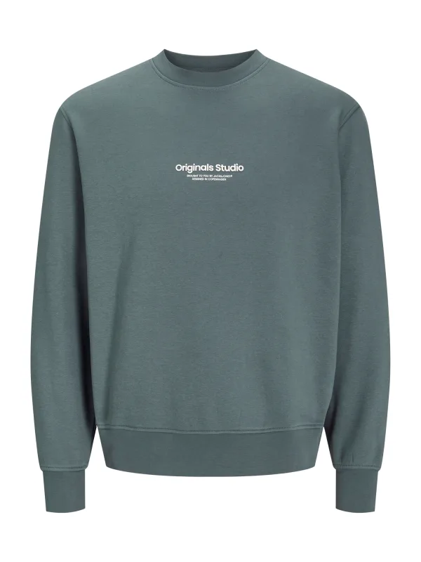 Specificaties: JACK & JONES Sweatshirt ‘JWHVESTERBRO’ duifblauw / wit