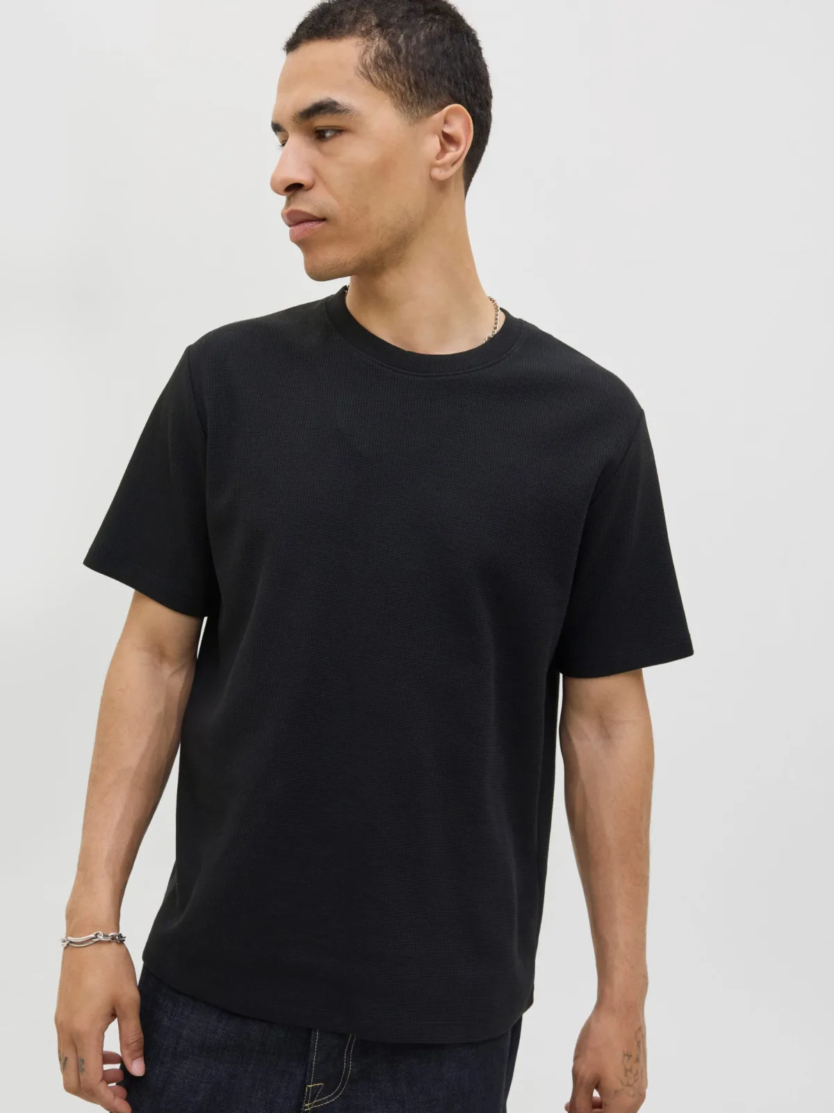 T-shirt van Jack & Jones voor heren;Materiaalmix met katoengehalte;Recht model;Model 'EAUSTIN';Structuurpatroon ;Ronde hals;Labeldetail;Ruglengte bij maat M: 70 cm